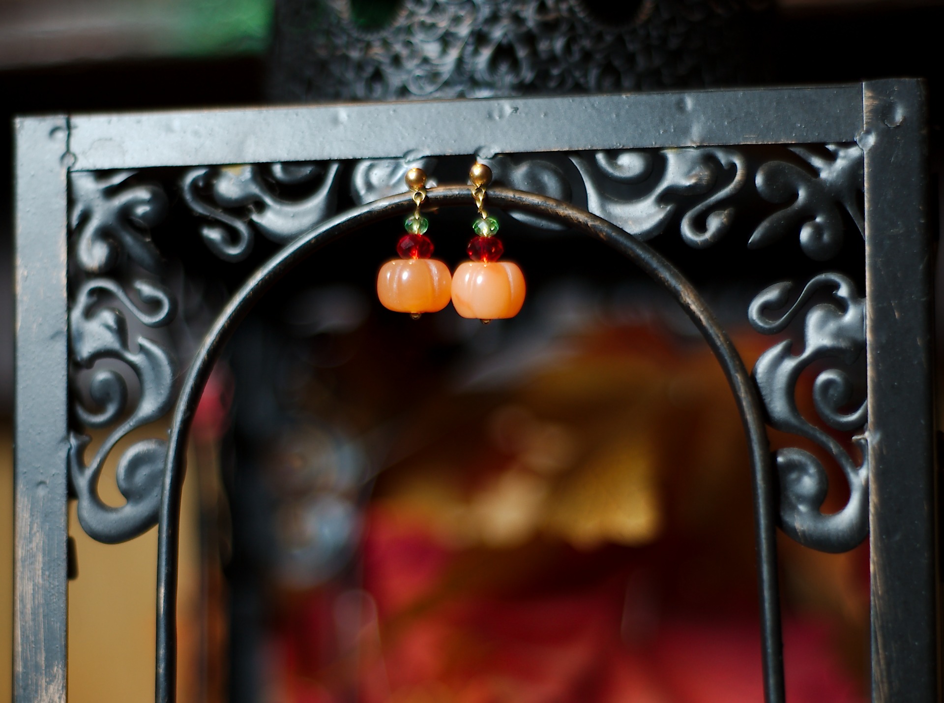 Craquez pour ces adorables boucles d'oreilles en forme de citrouille 3D en pierre naturelle et Cristal, un bijou plein de caractère qui évoque la douceur et les couleurs chatoyantes de l'automne.