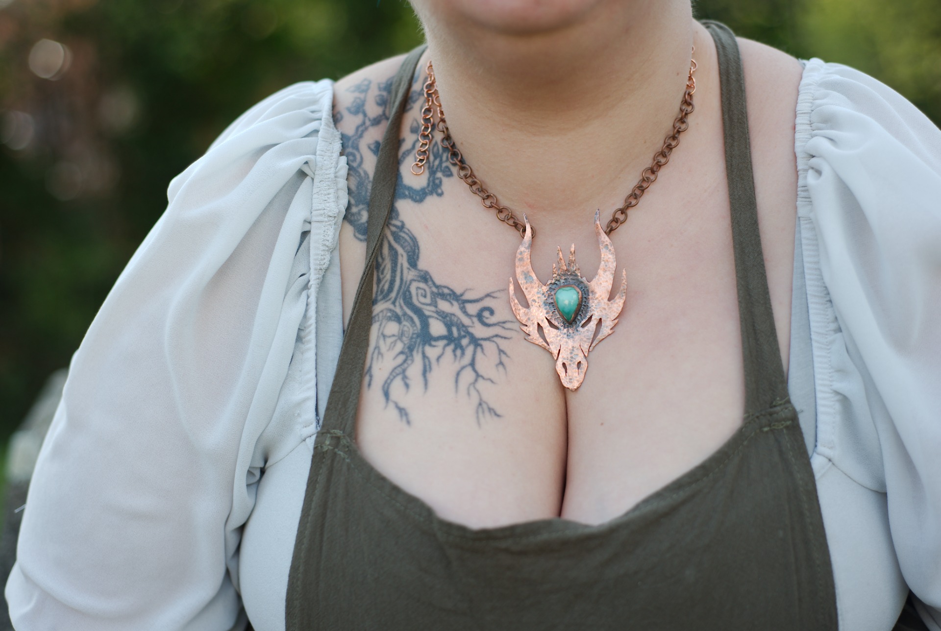 Forgé comme un ancien talisman, ce collier en cuivre évoque la présence d'un dragon gardien, figé dans le métal mais vibrant encore d'une force ancienne. Entièrement façonné à la main, chaque martelage dessine des écailles irrégulières, comme façonnées par le temps et le feu.