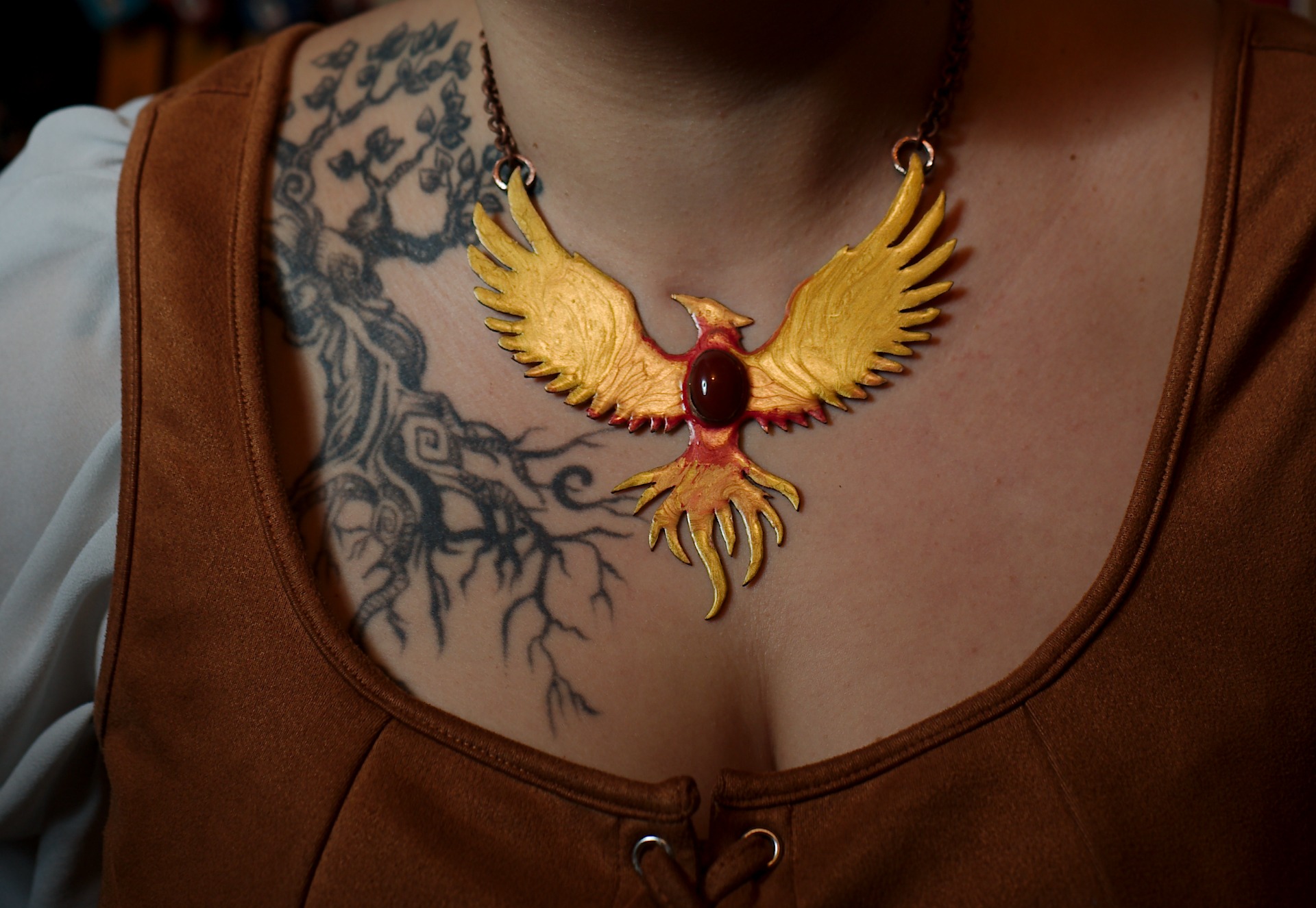 Forgé dans l'esprit des légendes oubliées, ce collier incarne le Phénix, oiseau mythique né des flammes et gardien des serments éternels. Découpé dans du cuivre naturel puis façonné à la main, l'oiseau déploie ses ailes dans un élan figé, comme suspendu entre cendres et renaissance.